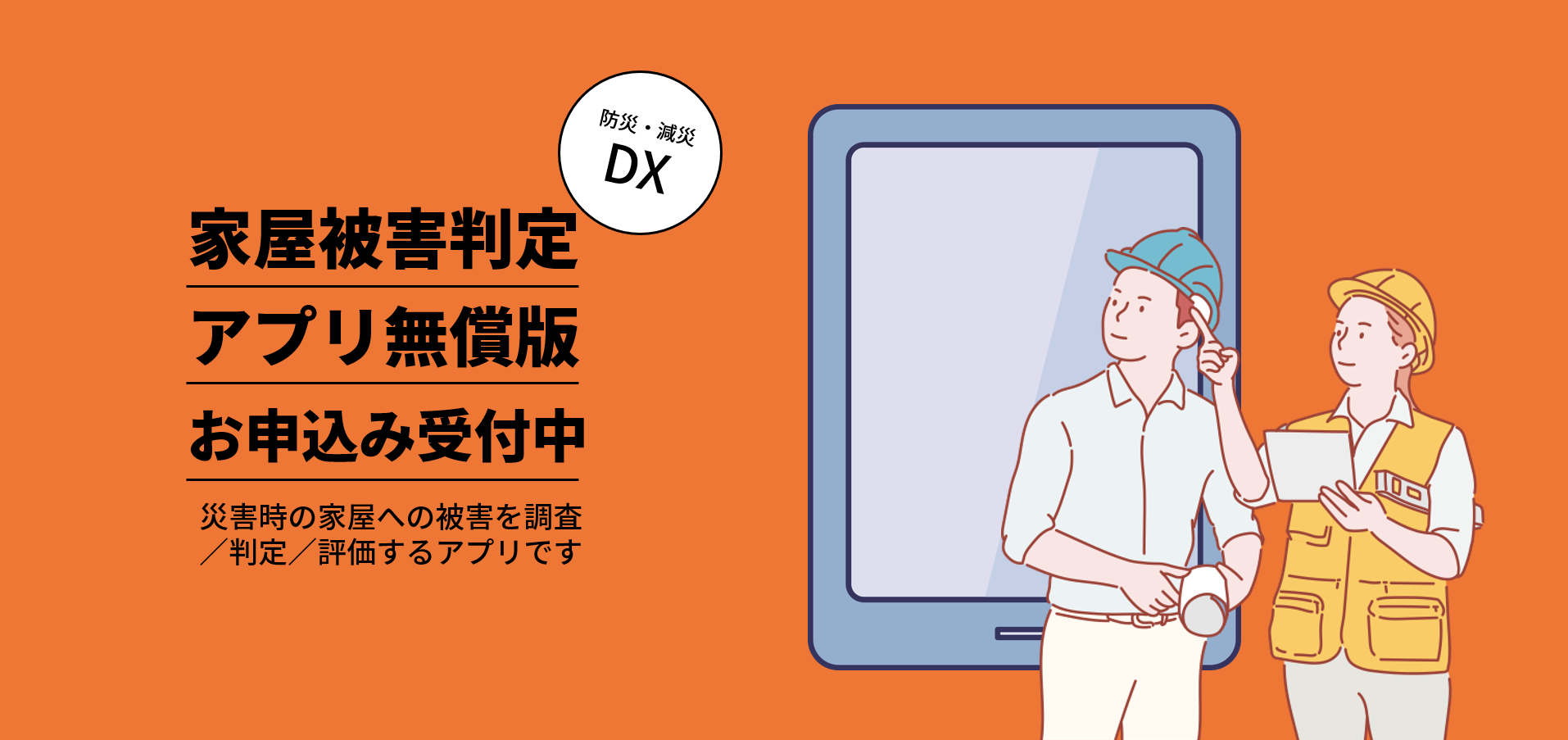 | 内容 | 家屋被害認定調査でご利用いただけるアプリケーションの無償版(以下、無償版)をご提供いたします。 ※罹災証明迅速化ソリューションを実現する機能の一つです。 対象のお客様は官公庁職員様です。 民間企業、団体、当社が官公庁職員様と判断できないお申込みには対応出来かねますので あらかじめご了承ください。 ◆無償版利用条件は、以下の通りです。 ・申込者が官公庁職員様であること ・自庁にて検証に利用できるiPadを調達できること ・当社が規定する利用規約に同意できること 【利用条件】 ・iPad iOS16.4以上 ・iPadウェブブラウザ― Google Chrome ・LGWAN接続端末(※CSV出力用) ・LGWAN端末ウェブブラウザ Microsoft EdgeまたはGoogle Chrome(いずれもバージョン93以上) ※上記機材の準備をいただけない場合、動作環境や操作のお問い合せには対応出来ません。 【申し込みの流れ】 ①本サイト「お申込みはこちら」から必要事項を登録ください。 ②当社にて登録内容を確認後、無償版お申込みサイトをご案内いたします。 ③無償版お申込みサイトで利用規約をご確認の上、利用申込書に記入、FAX/郵送で当社に送付ください。 【よくあるお問い合せ】 Q.iPad以外のタブレット端末でも利用可能でしょうか? A.当社にて動作の保証はいたしませんが、ご利用いただくことは可能です。 但し動作の不具合、操作のご案内については対応出来ません。 Q.申し込みにあたって、市長印が必要でしょうか? A.申込者様(役職:課長様以上)の署名もしくは捺印をお願いいたします。 Q.申し込み後、どのくらいの期間で利用可能でしょうか? A.申し込み受付~利用開始まで、約1か月程度のお時間をいただいております。 Q.無償版を利用するにあたって、住民データとの連携、またはなにか事前作業が必要でしょうか。 A.自治体様の保有データとの連携は必須ではございません。 |